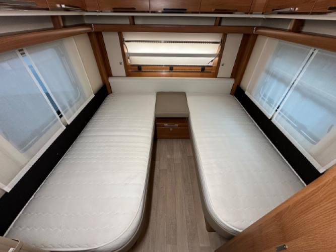 | Voorzijde | Enkele bedden met een rolbed, waardoor je één groot bed creëert, met hieronder veel opbergruimte. |