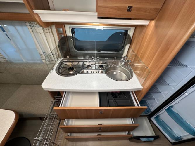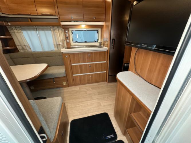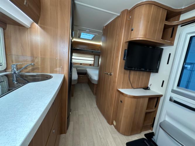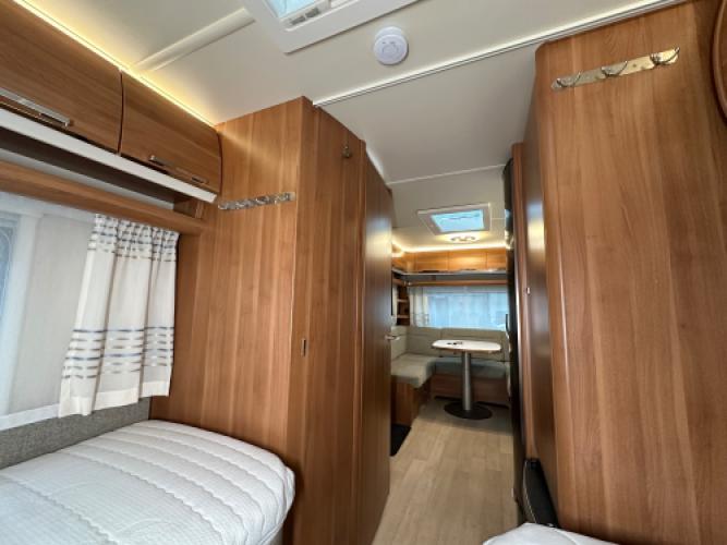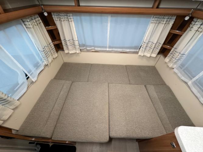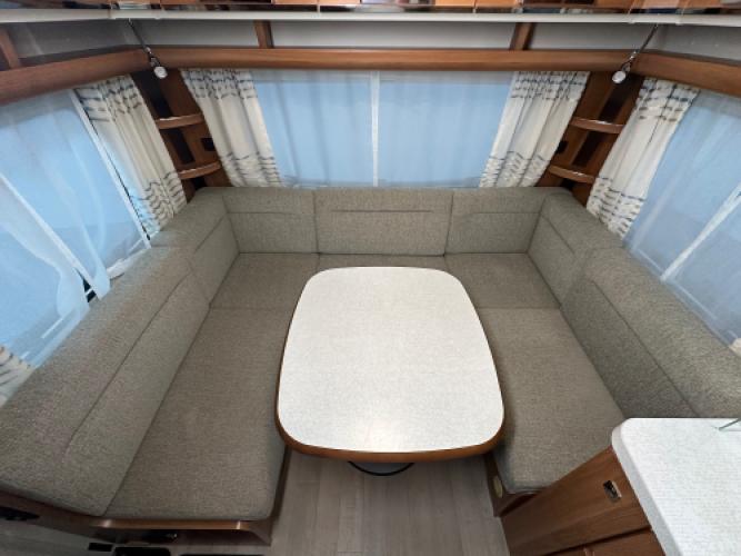 De Fendt Saphir 515 SG is een populaire middenklasse caravan die bekendstaat om zijn degelijke bouwkwaliteit, comfortabele indeling met twee enkele bedden en een ruim woongedeelte. Voorin bevinden zich twee enkele bedden met opbergruimte eronder, achterin een ruime rondzit die eenvoudig is om te bouwen tot extra slaapplaatsen, en centraal een praktische middenkeuken. Dankzij de uitgebreide uitrusting en diverse opties is deze Saphir 515 SG helemaal klaar voor een nieuw avontuur. Er is sprake van lichte hagelschade, wat geen invloed heeft op de functionaliteit van de caravan. Wanneer u nu bij ons een caravan of camper aanschaft, kunt u gratis gebruikmaken van onze stallingsmogelijkheid. De caravan of camper kan kosteloos tot en met het voorjaar bij ons blijven staan, zodat u rustig de tijd heeft om een geschikte stalling bij u in de buurt te vinden. Vraag onze medewerkers naar de voorwaarden.