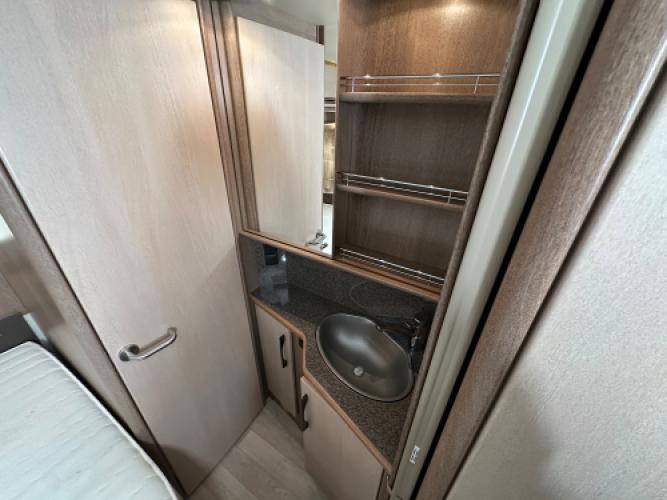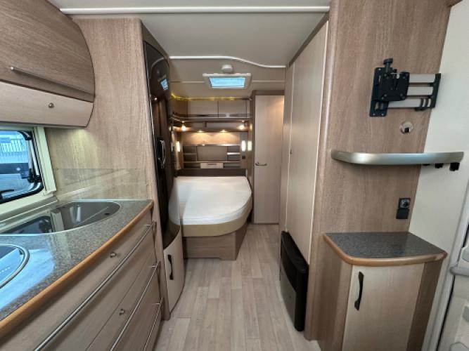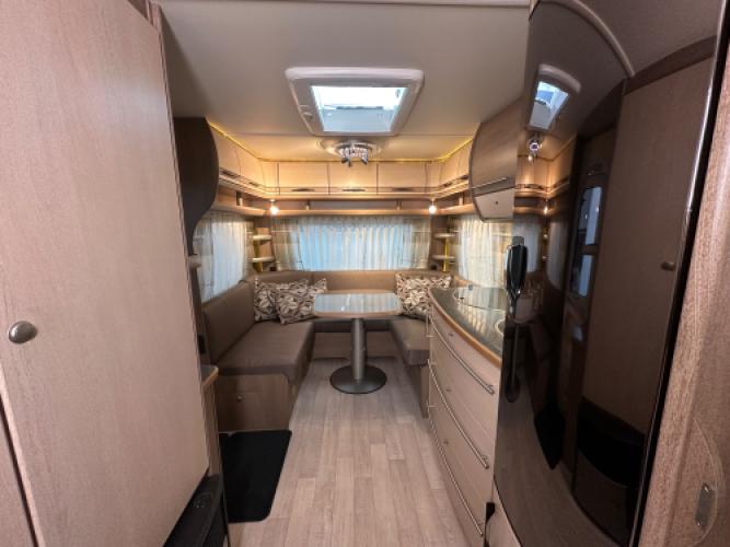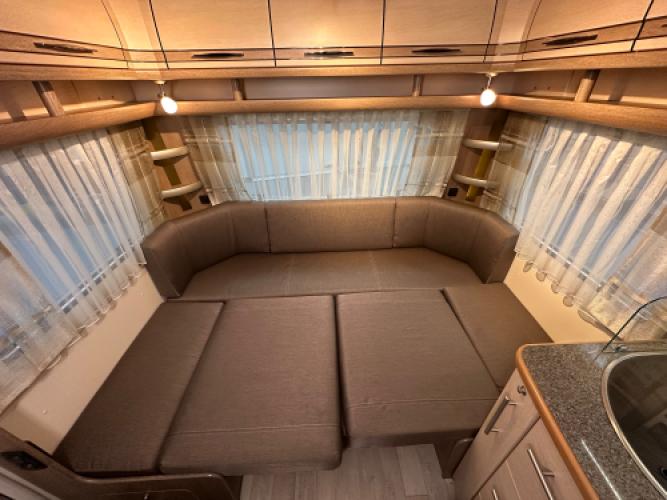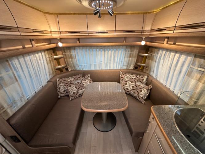 Deze Fendt Tendenza 465 SFB is compleet uitgerust met luxe opties die het reizen aangenaam en eenvoudig maken. Voorin bevindt zich een comfortabel Frans bed met daaronder een zeer ruime opbergruimte, die bovendien eenvoudig te bereikbaar is via het serviceluik. Daarnaast vindt u een toiletruimte met een externe wastafel in de hoek. In het midden staat een ruime, praktische keuken en een grote tower koelkast. Achterin bevindt zich een rondzit die u eenvoudig kunt ombouwen tot extra slaapplaatsen voor twee personen. Wanneer u nu bij ons een caravan of camper aanschaft, kunt u gebruikmaken van onze stallingsmogelijkheid. De caravan of camper kan kosteloos tot en met het voorjaar bij ons blijven staan, zodat u rustig de tijd heeft om een geschikte stalling bij u in de buurt te vinden. Vraag onze medewerkers naar de voorwaarden.