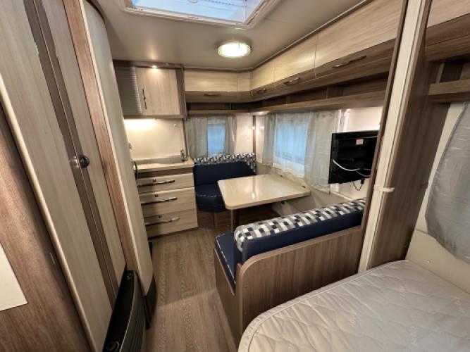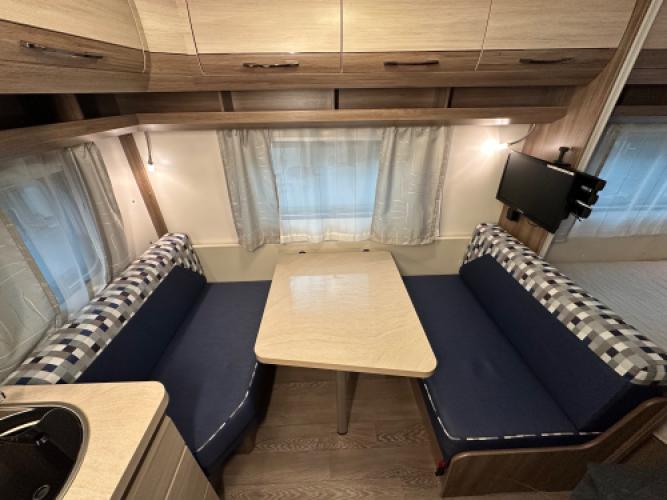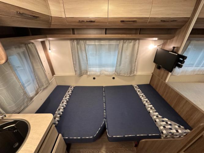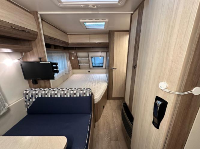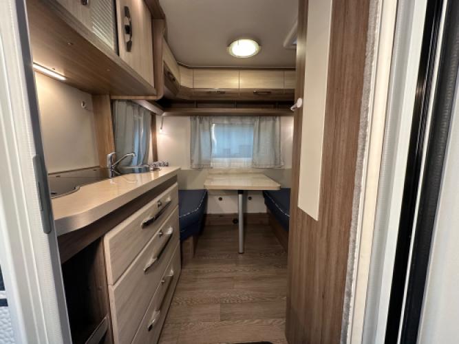 Deze prachtige Hobby De Luxe 400 SFE beschikt over de populaire indeling met een frans bed voorin en een treinzit en keuken achterin. Daarnaast is dit exemplaar uitgerust met veel luxe opties. Zoals altijd zien we ook bij deze caravan de hoogwaardige afwerking en kwaliteit terug die zo kenmerkend zijn voor Hobby. Wanneer u nu bij ons een caravan of camper aanschaft, kunt u gebruikmaken van onze stallingsmogelijkheid. De caravan of camper kan kosteloos tot en met het voorjaar bij ons blijven staan, zodat u rustig de tijd heeft om een geschikte stalling bij u in de buurt te vinden. Vraag onze medewerkers naar de voorwaarden.
