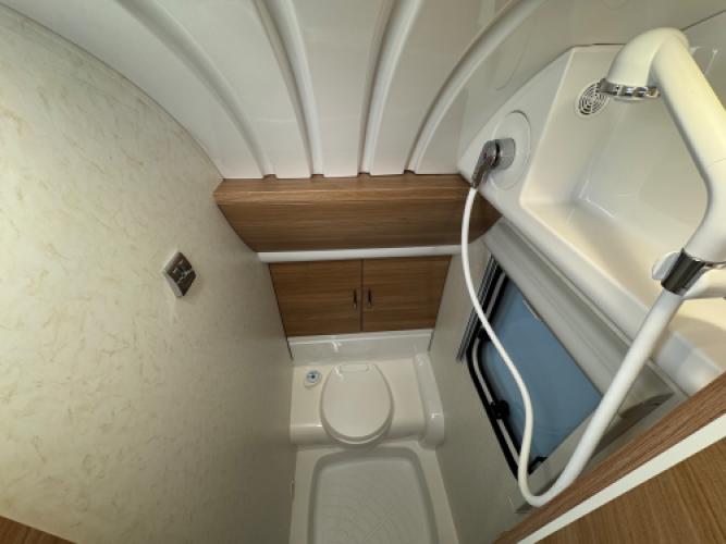 | Voorzijde | Fransbed met hieronder veel opbergruimte en in de hoek een badkamer. |