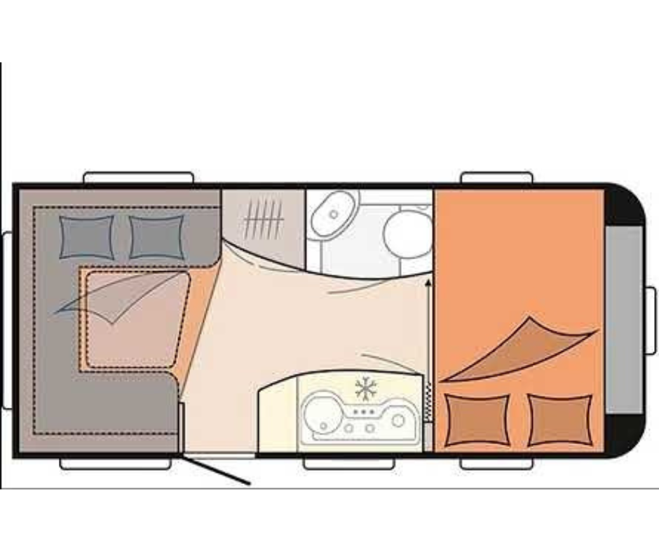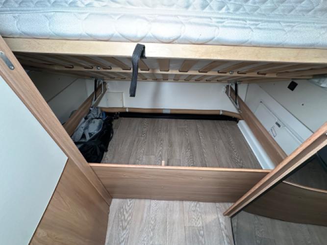 | Voorzijde | Dwars bed met hieronder veel opbergruimte. |