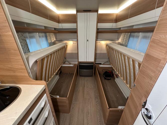 Deze prachtige Hobby Excellent 460 UL is al volledig voor u uitgerust met een Enduro mover, Enduro verschuifbare fietsendrager en een Enduro Autosteady uitdraaisysteem t.w.v. €1300,-. Binnenin ziet u de hoogwaardige en moderne afwerkingen van Hobby weer goed terugkomen. Wanneer u nu bij ons een caravan of camper aanschaft, kunt u gebruikmaken van onze stallingsmogelijkheid. De caravan of camper kan kosteloos tot en met het voorjaar bij ons blijven staan, zodat u rustig de tijd heeft om een geschikte stalling bij u in de buurt te vinden. Vraag onze medewerkers naar de voorwaarden.