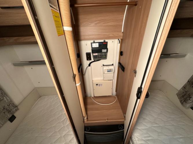 | Voorzijde | Enkele bedden met hiertussen de hangkast. |