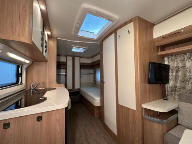 Deze prachtige Hobby De Luxe 460 LU is voorzien van een aantal luxe opties, namelijk een Opblaasbare voortent, Reich mover en een Enduro fietsendrager. De caravan heeft een indeling van een rondzit achterin en enkele bedden voorin. Met een caravan van Hobby kies je voor zekerheid, comfort en jarenlang zorgeloos kampeerplezier. Dit gerenommeerde Duitse merk behoort al decennialang tot de top van Europa en staat bekend om zijn betrouwbare kwaliteit en doordachte ontwerpen.