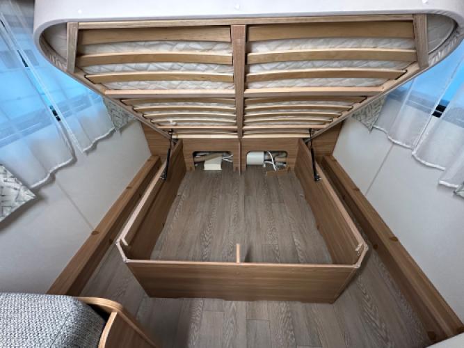 | Voorzijde | Queensbed met hieronder opbergruimte. |