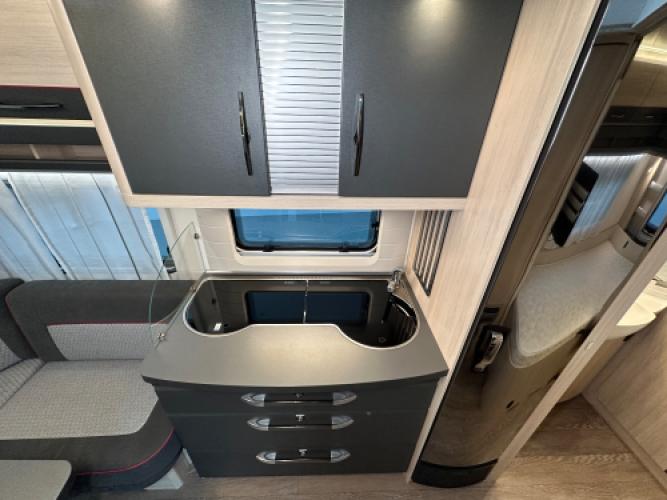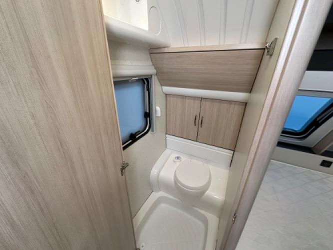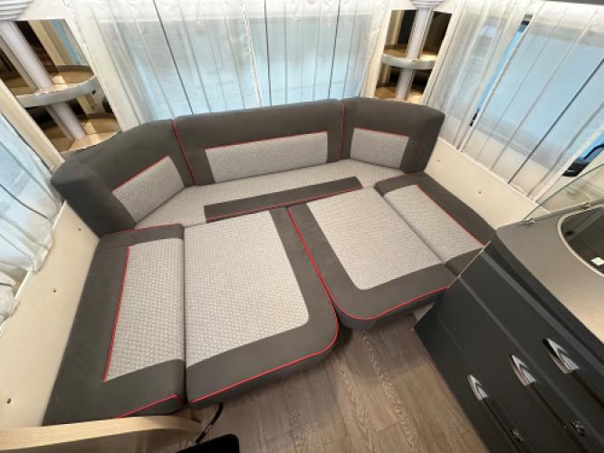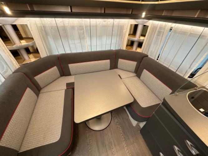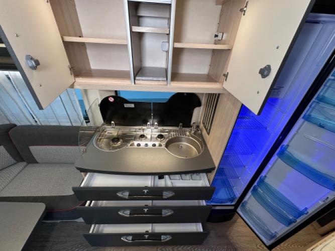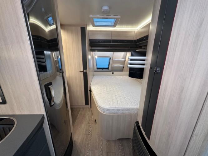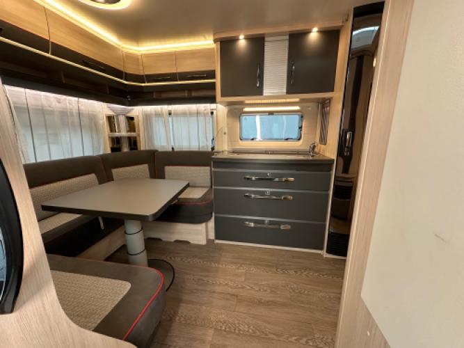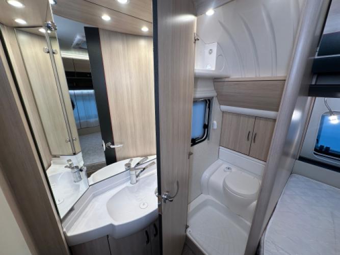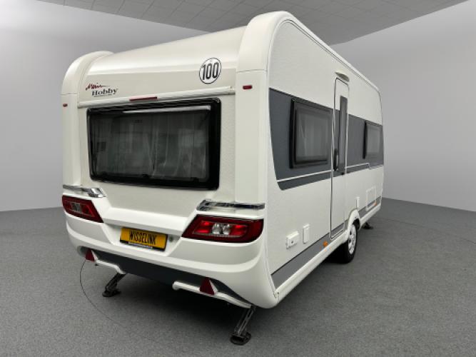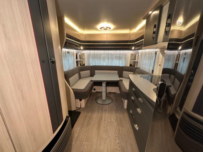 Deze mooie Hobby De Luxe 460 UFe combineert een compact formaat met een populaire indeling én een niveau van luxe en comfort dat u nergens anders vindt. Voorin bevindt zich een comfortabel Frans bed met daaronder een zeer ruime opbergruimte, die bovendien eenvoudig bereikbaar is via het serviceluik. Daarnaast vindt u een toiletruimte met een externe wastafel in de hoek. In het midden staat een ruime, praktische keuken met brede soft-close lades en een grote koelkast in tower‑model. Achterin bevindt zich een rondzit die u eenvoudig kunt ombouwen tot extra slaapplaatsen voor twee personen. Wanneer u nu bij ons een caravan of camper aanschaft, kunt u gebruikmaken van onze stallingsmogelijkheid. De caravan of camper kan kosteloos tot en met het voorjaar bij ons blijven staan, zodat u rustig de tijd heeft om een geschikte stalling bij u in de buurt te vinden. Vraag onze medewerkers naar de voorwaarden.
