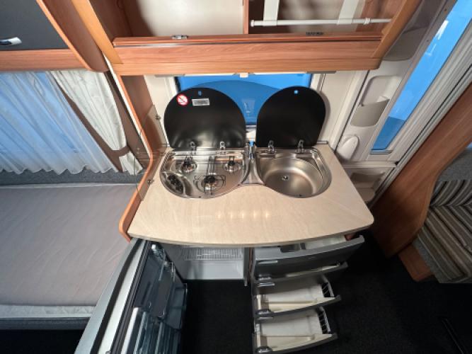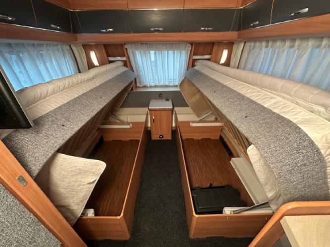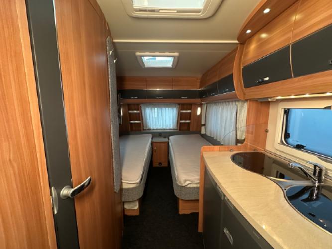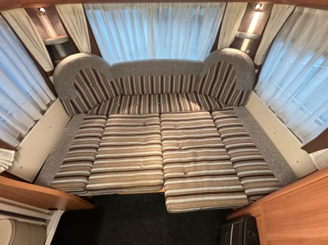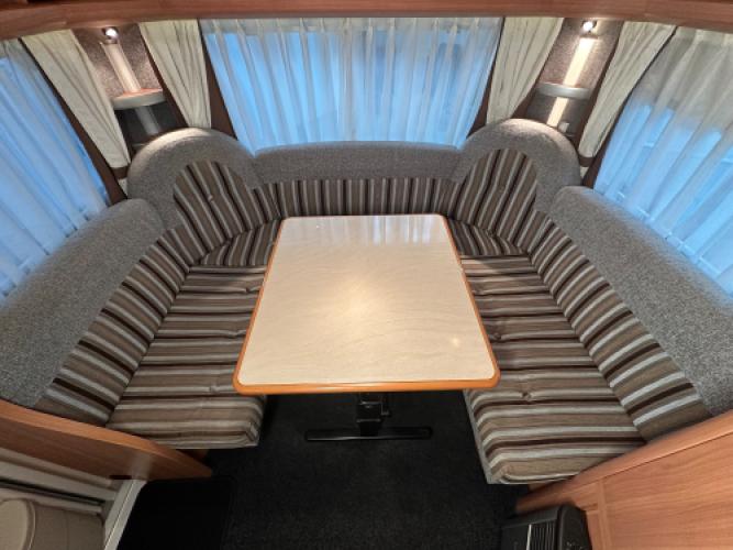 Deze prachtige Hobby De Luxe 490 UL is voorzien van een populaire indeling! Namelijk enkele bedden voorin waarvan u een groot bed kunt maken en achterin een ruime rondzit. De caravan beschikt over een aantal luxe opties zoals een Isabella voortent, Luifel en een mover.
