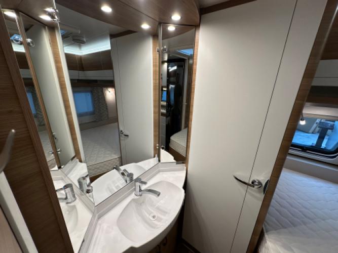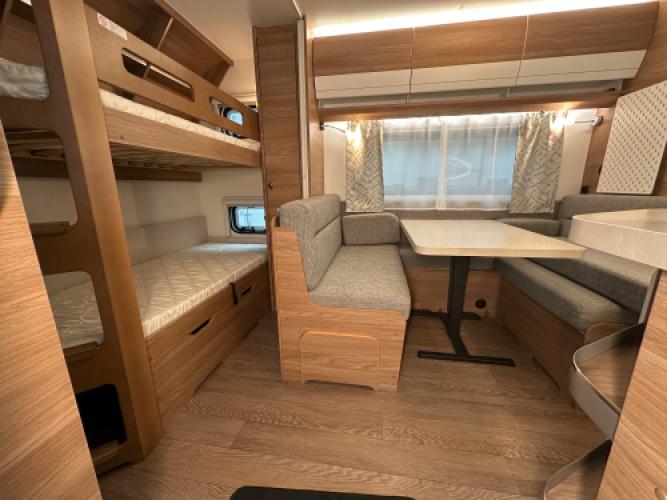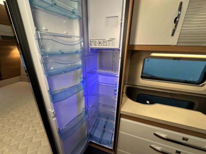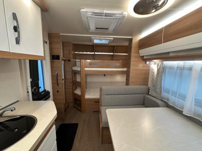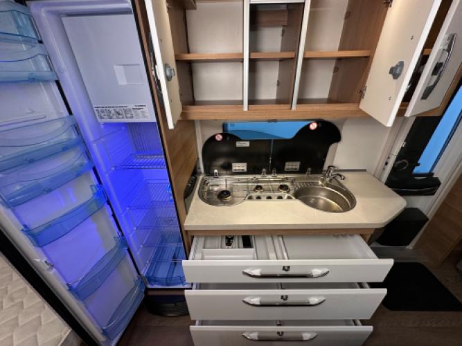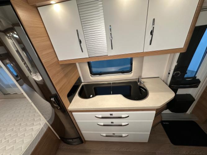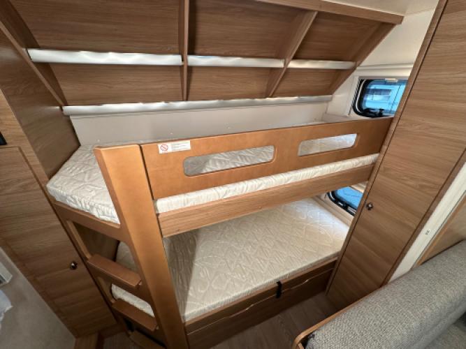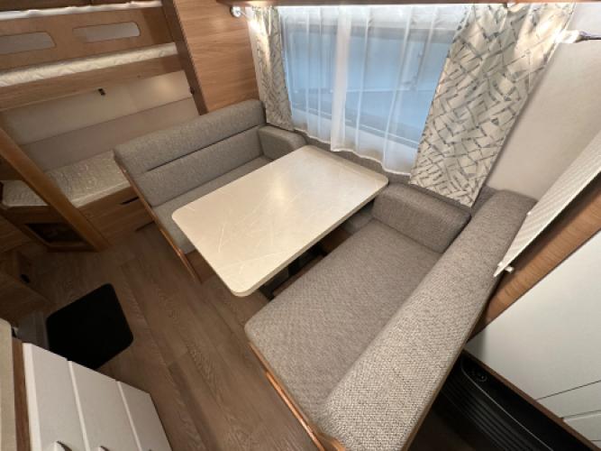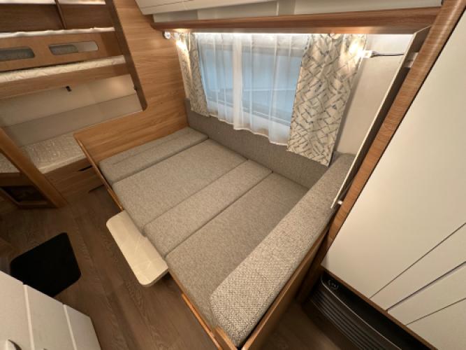 De Hobby De Luxe 540 KMFe combineert luxe met gezinscomfort. Deze caravan is uitgevoerd met een stapelbed voor de kinderen, een treinzit die u kunt ombouwen tot bed, een Frans bed en een stijlvol interieur. Verder is hij voorzien van vele luxe opties, zoals een Dometic dakairco, Thule cassetteluifel, Reich mover en een Thule fietsendrager. De grote Tower koelkast biedt volop ruimte voor alle boodschappen. Uiteraard zien we ook bij dit exemplaar de hoogwaardige afwerking en kwaliteit terug waar Hobby om bekendstaat. Er is sprake van lichte puntjes van hagel op het dak en front, wat geen invloed heeft op de functionaliteit van de caravan. Vandaar de scherpe prijs.