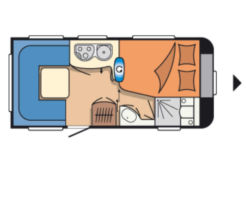 | Achter | Rondzit wat u kunt ombouwen tot extra slaapplaatsen. |