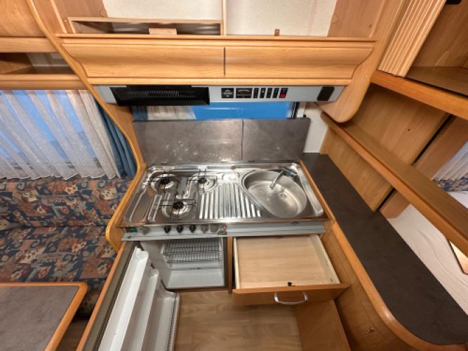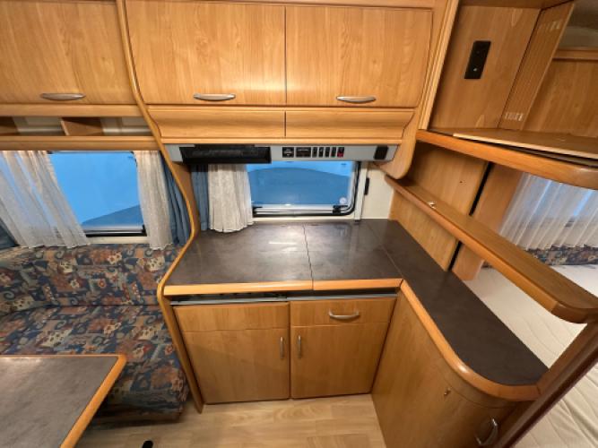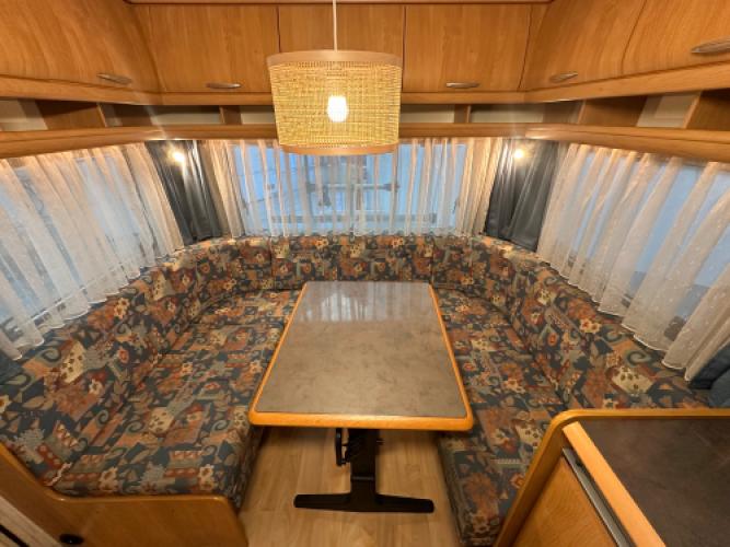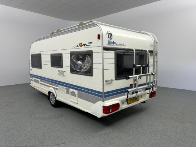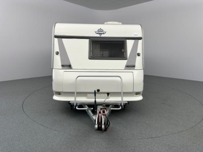 De Hobby Excellent 460 UFe is een nette, strak afgewerkte caravan met een moderne en lichte uitstraling. Aan de buitenkant valt direct de Thule zakluifel op, samen met de fietsendragers voor- en achterop. Dankzij de mover is hij ook nog eens makkelijk te verplaatsen. Deze caravan heeft van hele lichte puntjes op de linkerzijwand, wat geen invloed heeft op de functionaliteit van de caravan. Vandaar de scherpe prijs.