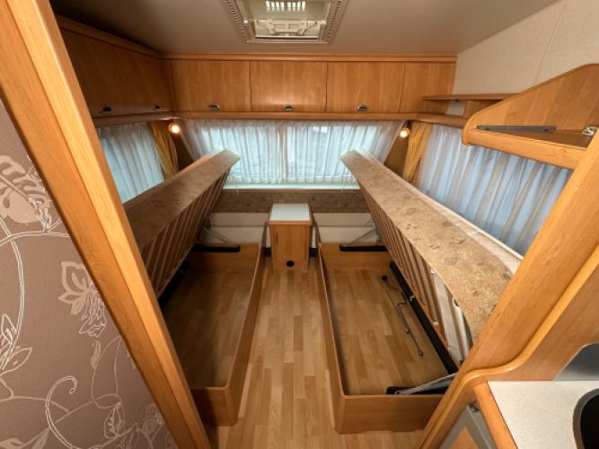 Deze Hobby Excellent 495 UL is een geliefde caravan met een indeling die jarenlang vrijwel onveranderd is gebleven. Dit model staat bekend om zijn comfortabele woonruimte, praktische indeling en bouwkwaliteit. Voorin bevinden zich twee enkele bedden, in het midden de keuken en badkamer en achterin een ruime rondzit die kan worden omgebouwd tot extra slaapplaatsen. Wanneer u nu bij ons een caravan of camper aanschaft, kunt u gratis gebruikmaken van onze stallingsmogelijkheid. De caravan of camper kan kosteloos tot en met het voorjaar bij ons blijven staan, zodat u rustig de tijd heeft om een geschikte stalling bij u in de buurt te vinden. Vraag onze medewerkers naar de voorwaarden.