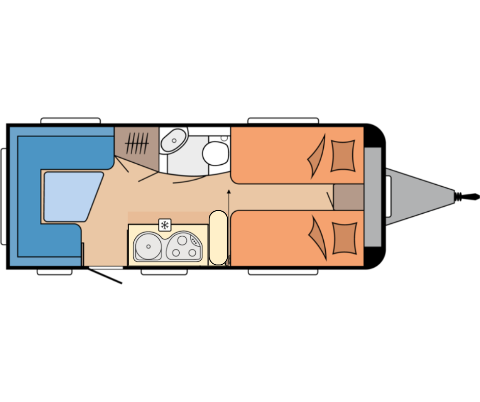 | Voorzijde | Enkele bedden met hieronder veel opbergruimte |