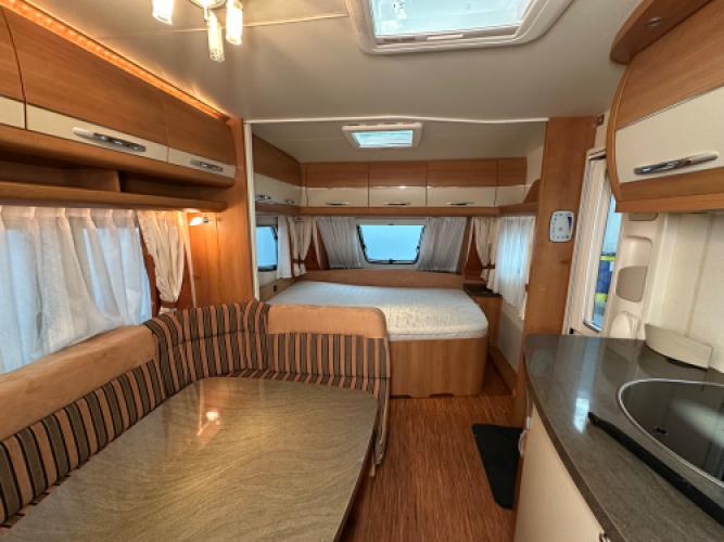 Prachtige Hobby De Luxe 545 KMF, zeer ruim en praktisch ingedeeld en uitgerust met diverse luxe opties. Dankzij het stapelbed is deze caravan uitermate geschikt om comfortabel met maar liefst 6 personen op pad te gaan. deze caravan heeft dakairco en een zeer ruime koelkast. Zoals we van Hobby gewend zijn, komt ook bij deze caravan de hoogwaardige kwaliteit en uitstekende afwerking duidelijk naar voren. Een ideale gezinscaravan die comfort, ruimte en luxe perfect combineert. Wanneer u nu bij ons een caravan of camper aanschaft, kunt u gratis gebruikmaken van onze stallingsmogelijkheid. De caravan of camper kan kosteloos tot en met het voorjaar bij ons blijven staan, zodat u rustig de tijd heeft om een geschikte stalling bij u in de buurt te vinden. Vraag onze medewerkers naar de voorwaarden.