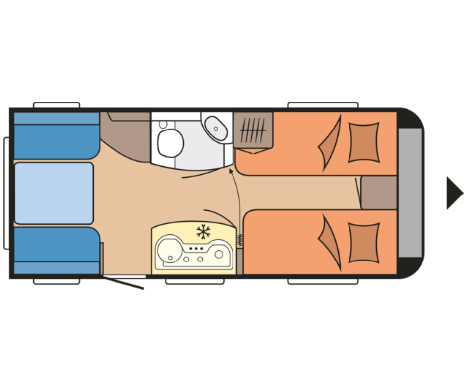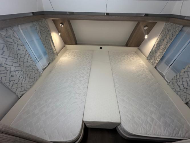 | Achter | Enkele bedden waar door middel van het rolbed één groot bed van gemaakt kan worden. |