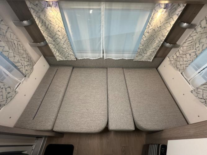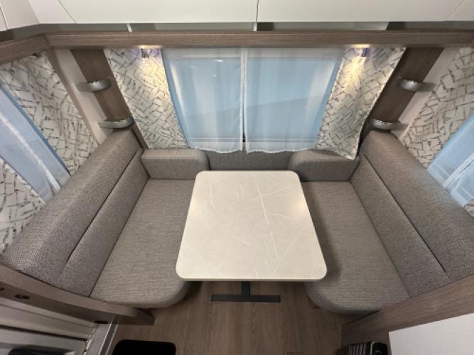 | Voorzijde | Dinette die gemakkelijk omgebouwd kan worden tot een extra bed. |