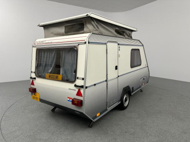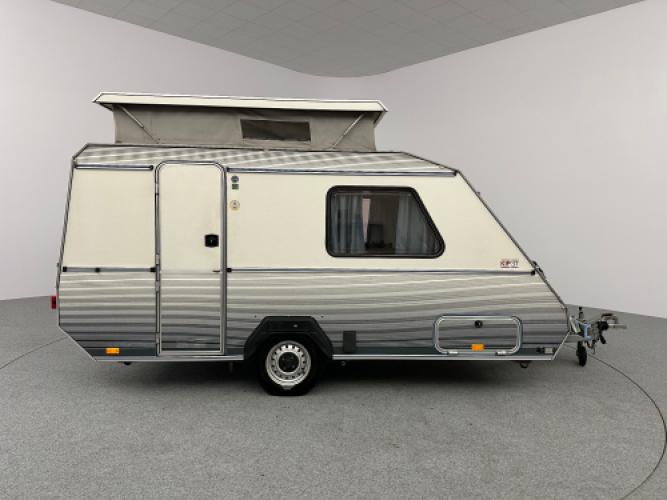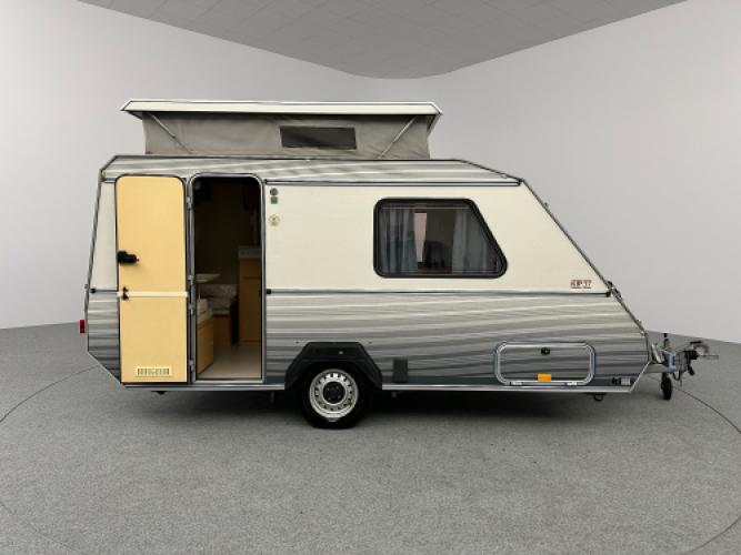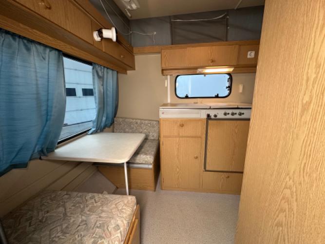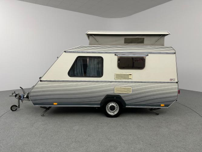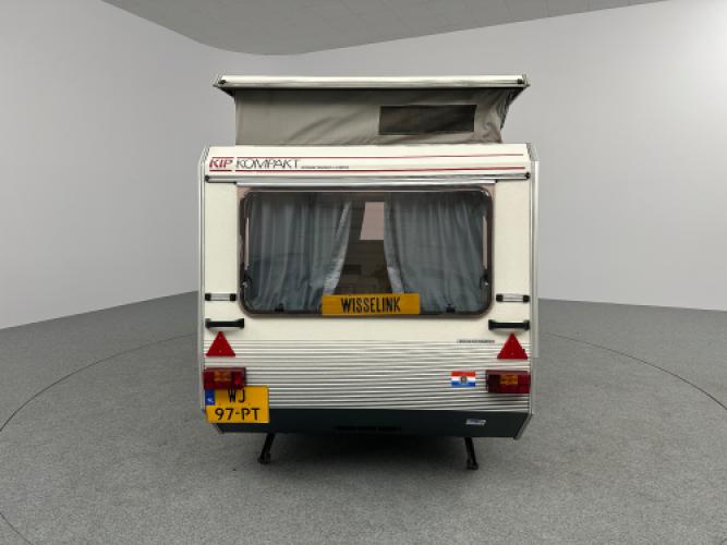 Deze Kip Kompakt 37 KK is een compacte en lichtgewicht caravan uit de bekende Kompakt-serie van het Nederlandse merk Kip. Dit model staat bekend om zijn praktische indeling, degelijke bouwkwaliteit en het kenmerkende hefdak. De indeling biedt slaapplaatsen voor maximaal drie personen. De Kip Kompakt beschikt over een dubbele dinette, waarvan de grote dinette eenvoudig is om te bouwen tot twee enkele bedden in de lengterichting of tot één groot bed. Daarnaast beschikt de caravan over een compact keukenblok met kookgelegenheid en opbergruimte onder de dinette, welke van buitenaf bereikbaar is via het serviceluik.