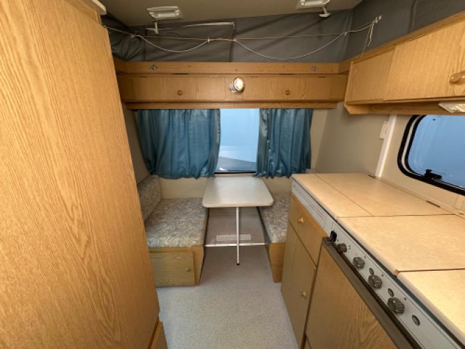 | Achter | Dinette welke je eenvoudig kan ombouwen tot extra slaapplaats. |