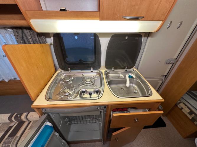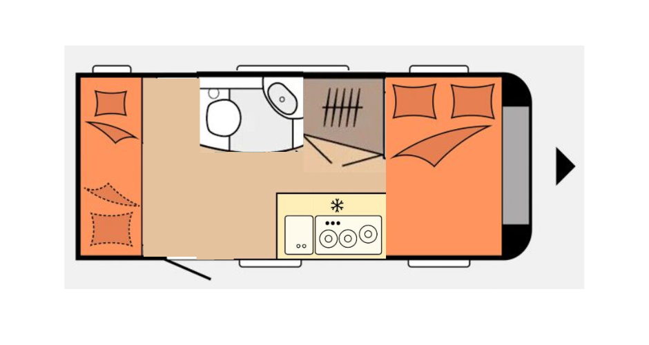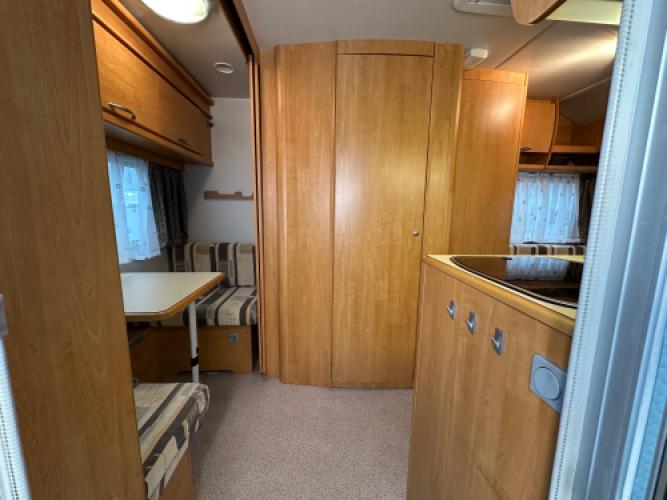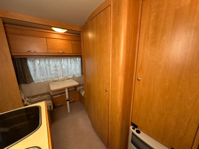 Deze 4 persoons lichtgewicht caravan is uitgerust met opties die u nodig zal hebben om het comfortabel te maken tijdens uw vakantie. De Knaus is geschikt voor 4 personen. Dit komt omdat u de voorste dinette kunt ombouwen tot stapelbed, door de kastjes naar voren te halen. Aan de voorzijde bevindt zich een dwars bed.