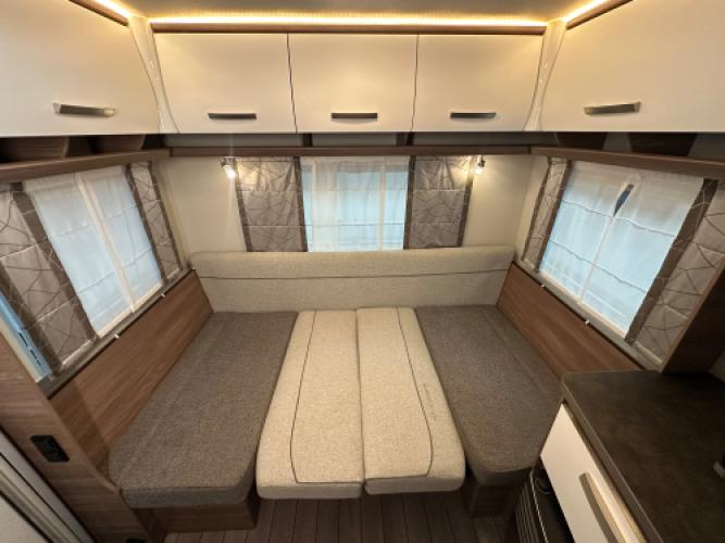 | Achter | Dinette die u kunt ombouwen tot extra bed. |