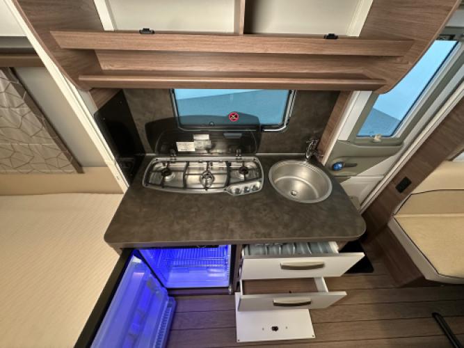 Deze prachtige Knaus Sport 500 EU verkeert in uitstekende staat en is de ideale caravan voor wie comfort en gebruiksgemak belangrijk vindt. De populaire indeling met twee enkele bedden, inclusief rolbed om eenvoudig één groot bed te creëren, biedt veel flexibiliteit. De ruime zitgroep en praktische keuken zorgen voor een open en aangename sfeer. Dankzij de aanwezige opties wordt kamperen nóg comfortabeler en zorgelozer.