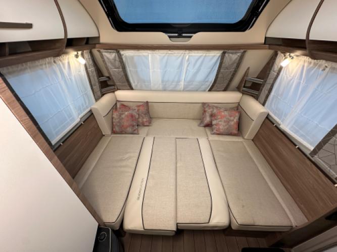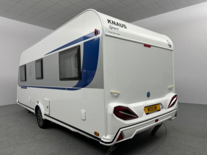 Prachtige Knaus Sport 540 UE Silver Selection met de zeer geliefde indeling: een ruime rondzit achterin en comfortabele enkele bedden met rolbed voorin.