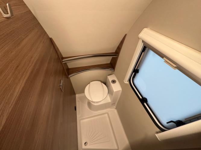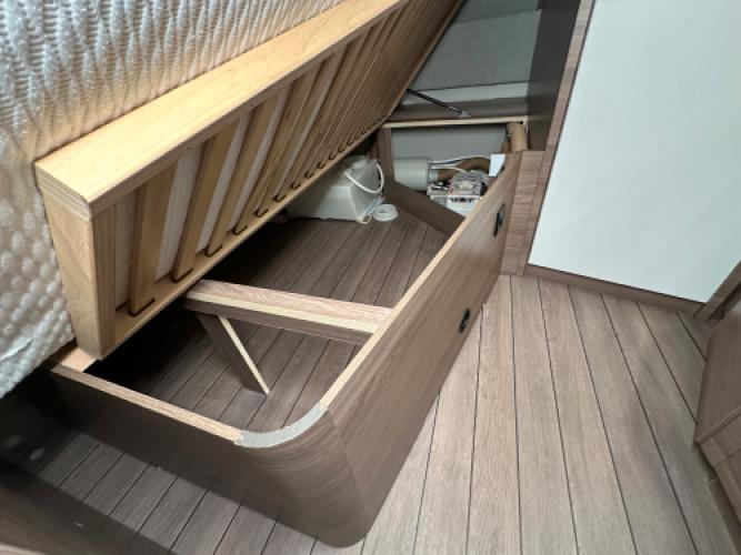 | Voorzijde | Frans bed met daaronder veel opbergruimte en daarnaast de toiletruimte. |