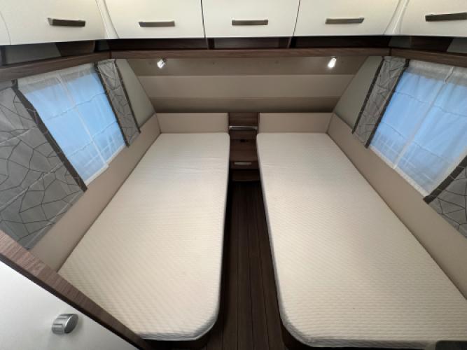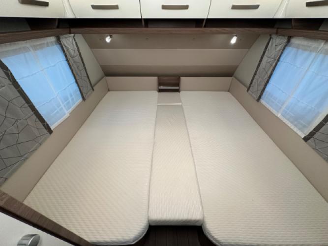 | Voorzijde | Enkele bedden die u kunt ombouwen tot één groot bed door het rolbed. |
