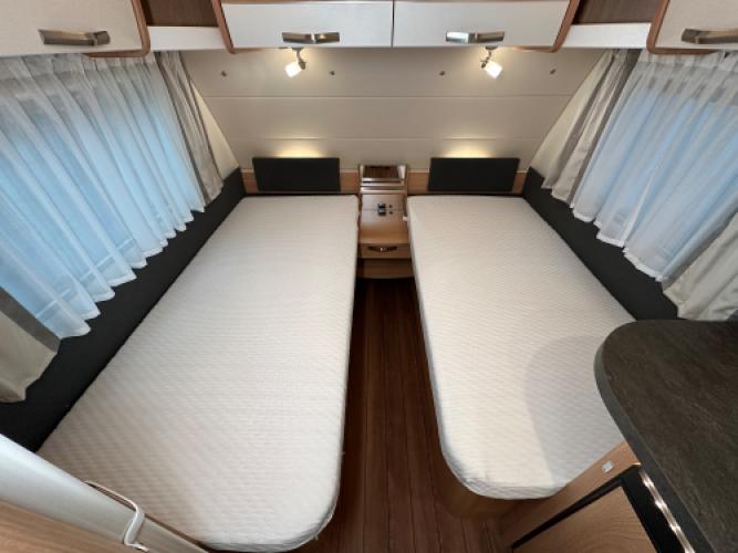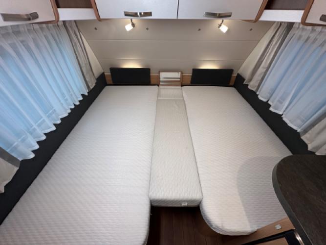 | Voorzijde | Enkele bedden met een rolbed in het midden, zodat je er één groot bed van kunt maken. |