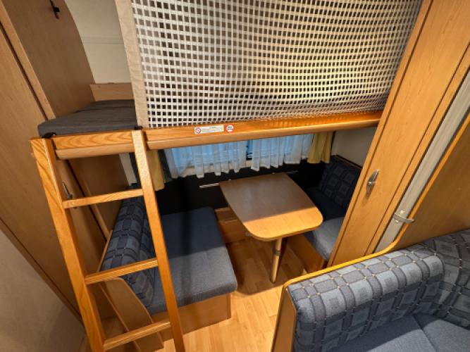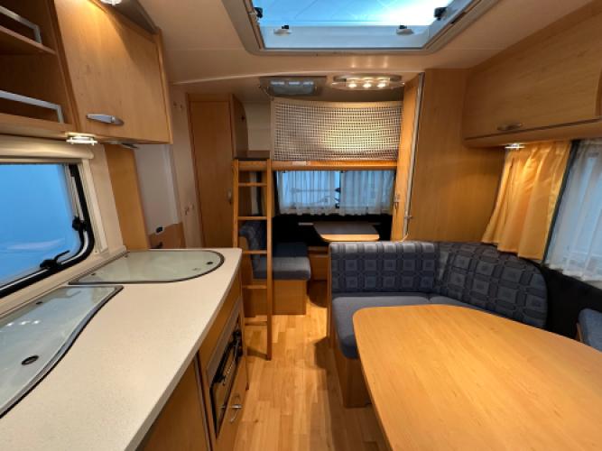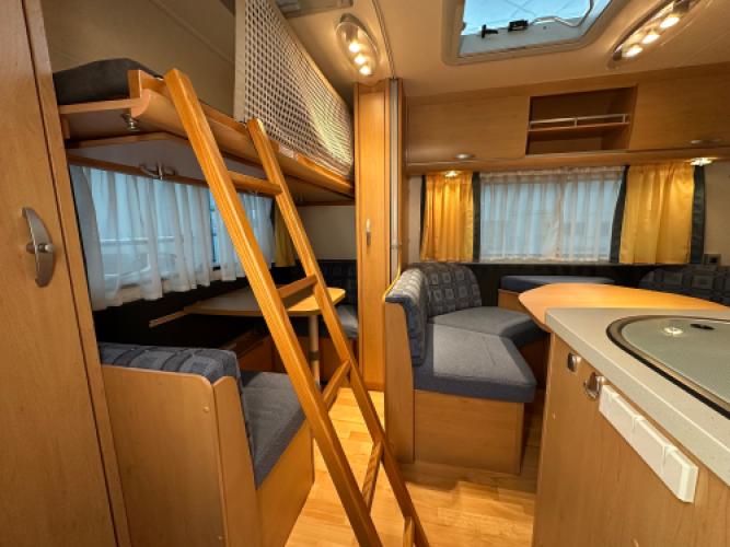 Prachtige Knaus Südwind 500 FSK stapelbedcaravan. Deze ruime caravan beschikt over een slimme indeling en is uitgerust met diverse opties die het reizen comfortabel en zorgeloos maken. Boven de zitgroep achterin klapt u eenvoudig het stapelbed uit, waardoor de caravan in een handomdraai verandert in een volwaardige gezinscaravan – ideaal voor reizen met kinderen. Daarnaast komt ook bij dit model duidelijk naar voren waar Knaus om bekendstaat: een strakke afwerking en hoogwaardige kwaliteit tot in de kleinste details.