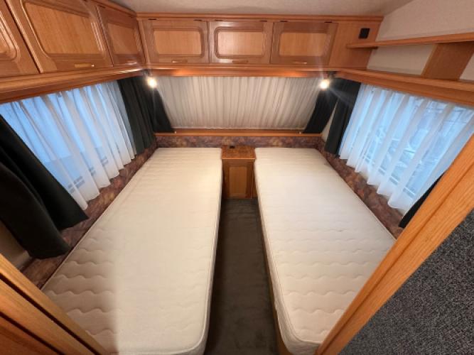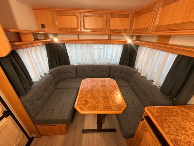 Deze LMC Dominant 530 is een ruime caravan met de gewilde indeling. Aan de voorkant bevinden zich twee enkele bedden met veel opbergruimte eronder. Achterin vind u de comfortabele rondzit, die u eenvoudig kunt ombouwen tot extra slaapplaatsen. De caravan is uitgerust met een voortent en een luifel, waarmee je extra leefruimte creëert. Wanneer u nu bij ons een caravan of camper aanschaft, kunt u gratis gebruikmaken van onze stallingsmogelijkheid. De caravan of camper kan kosteloos tot en met het voorjaar bij ons blijven staan, zodat u rustig de tijd heeft om een geschikte stalling bij u in de buurt te vinden. Vraag onze medewerkers naar de voorwaarden.