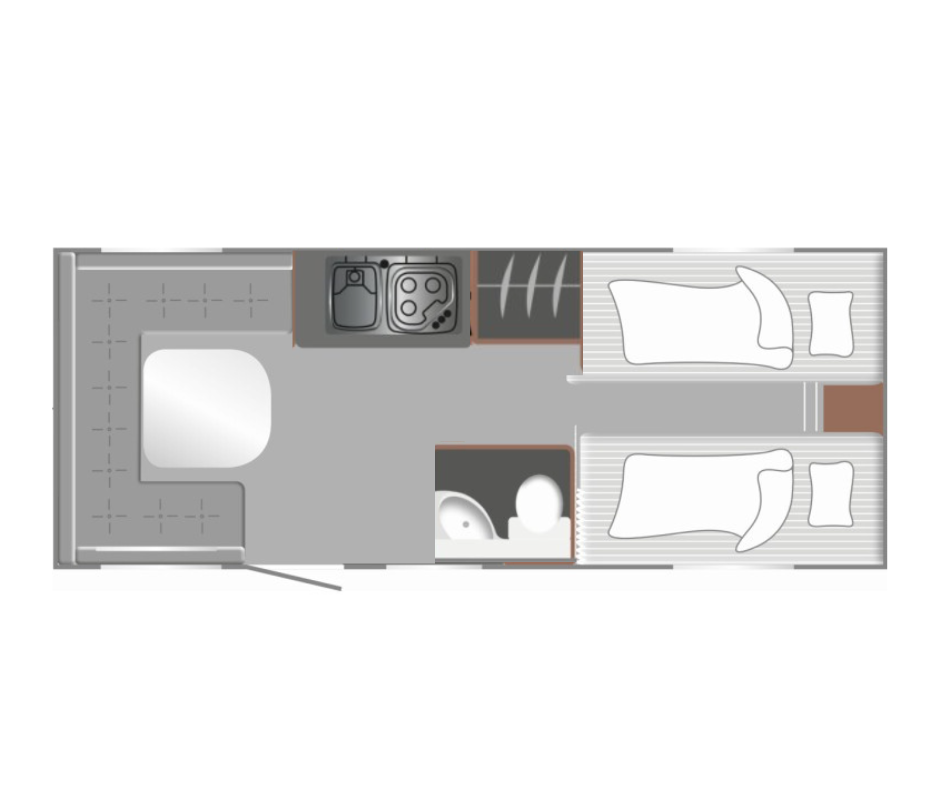 | Voorzijde | Enkele bedden met hieronder veel opbergruimte. |