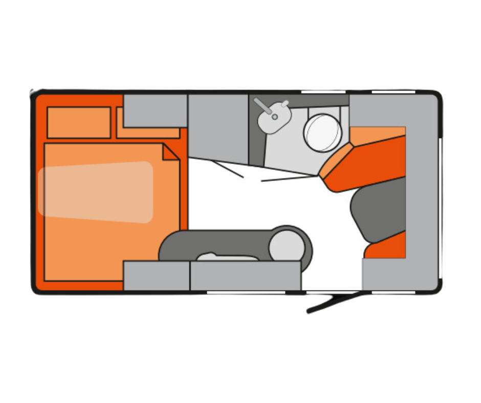 | Achter | Dwarsbed met hieronder veel opbergruimte. |