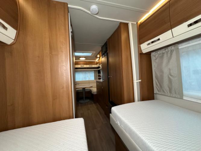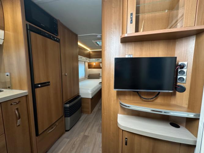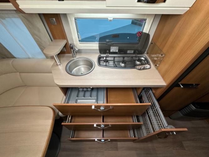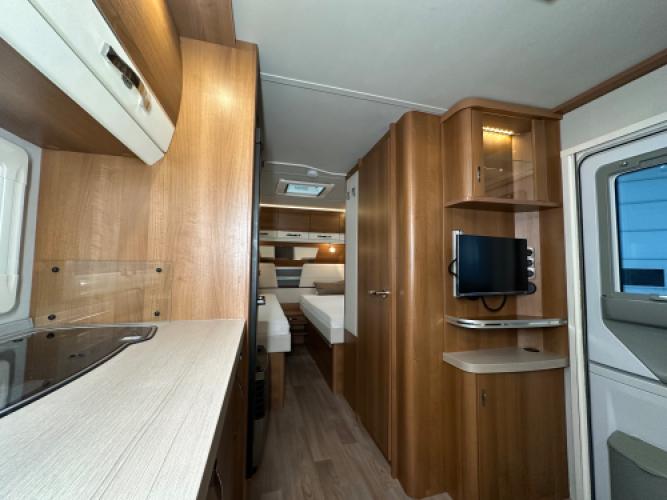 Deze prachtige Tabbert Da Vinci 540 E Finest Edition is compleet uitgerust met luxe opties, zoals een Thule cassetteluifel, Thule fietsendrager voorop en een Truma mover. Deze caravan beschikt over een populaire indeling enextra kwaliteit, comfort en premium details. Daarnaast beschikt de caravan over een kraan die ook als douche kan dienen. Wanneer u nu bij ons een caravan of camper aanschaft, kunt u gratis gebruikmaken van onze stallingsmogelijkheid. De caravan of camper kan kosteloos tot en met het voorjaar bij ons blijven staan, zodat u rustig de tijd heeft om een geschikte stalling bij u in de buurt te vinden. Vraag onze medewerkers naar de voorwaarden.