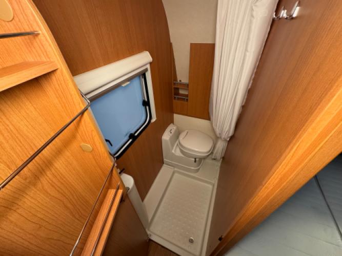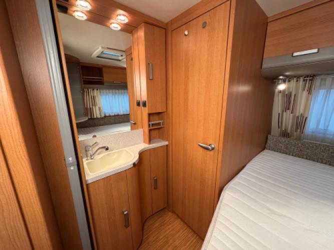 | Voorzijde | Fransbed met hieronder opbergruimte en hiernaast badkamer. |