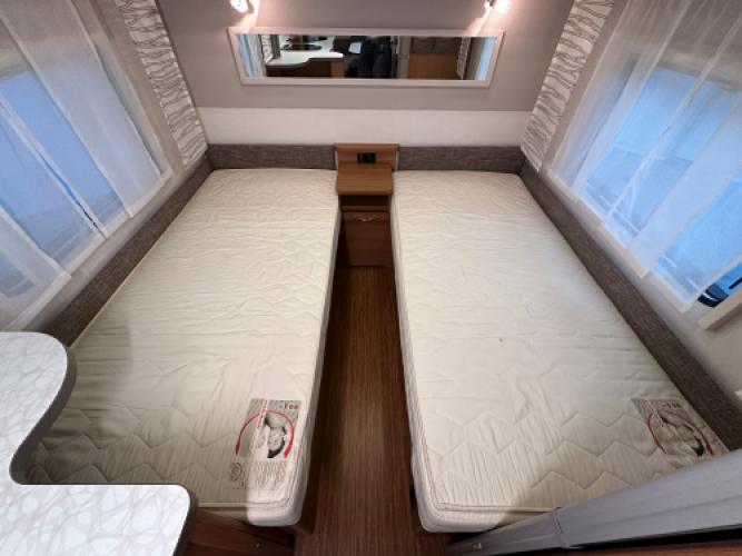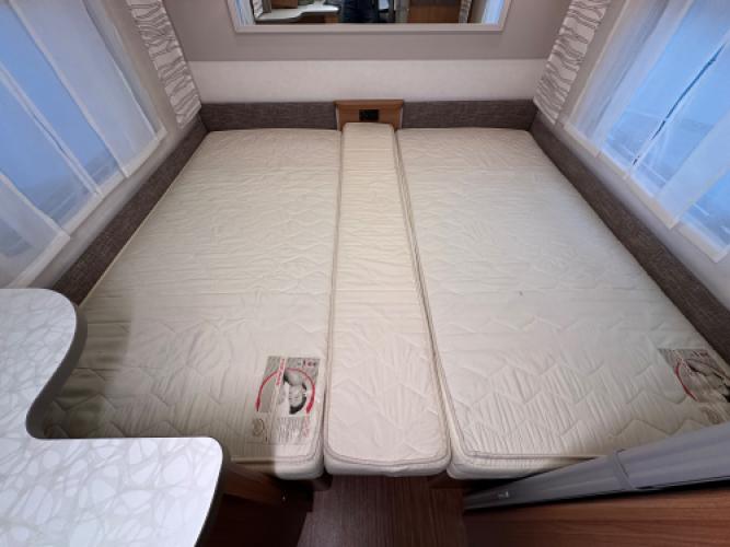 | Achter | Enkele bedden die samen één groot bed vormen. |