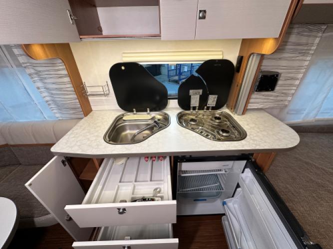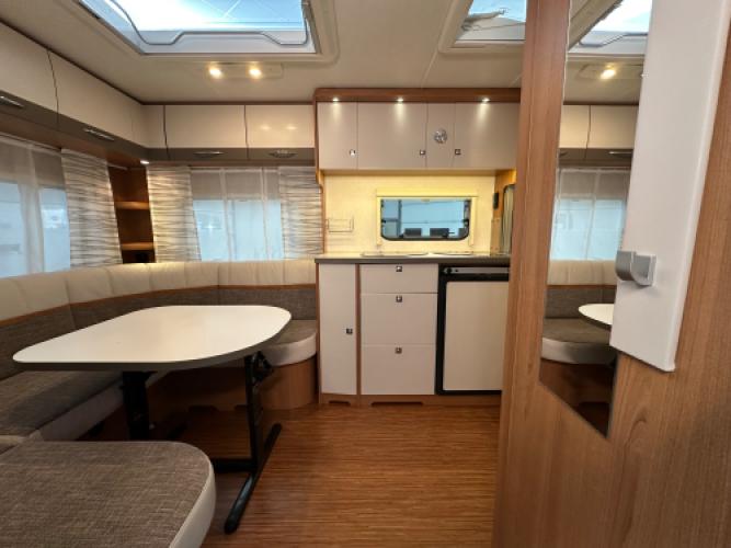 De TEC Weltbummler Energystyle 463 TDF – 55 Years Edition is een luxe jubileummodel dat is uitgebracht ter ere van het 55-jarig bestaan van TEC. Deze uitvoering combineert een praktische indeling met een modern design en een zeer compleet uitrustingsniveau. Deze prachtige caravan is daarnaast uitgerust met diverse luxe opties die uw vakantie helemaal compleet maken, waaronder een Dorema voortent, Reich mover, Thule cassetteluifel en maar liefst twee Thule fietsendragers voor- én achterop. Wanneer u nu bij ons een caravan of camper aanschaft, kunt u gebruikmaken van onze stallingsmogelijkheid. De caravan of camper kan kosteloos tot en met het voorjaar bij ons blijven staan, zodat u rustig de tijd heeft om een geschikte stalling bij u in de buurt te vinden. Vraag onze medewerkers naar de voorwaarden.