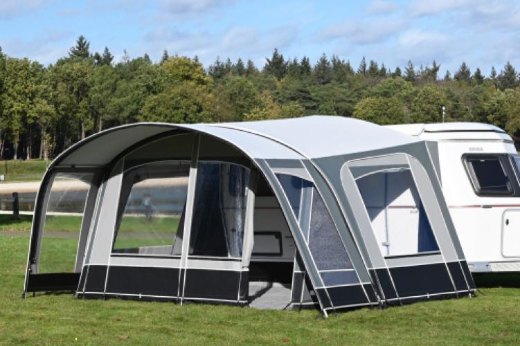 Doordat de voorwand en de zijwanden geheel uitritsbaar zijn kan ook in een handomdraai een ruime luifel gecreëerd worden. Deze wanden zijn tevens voorzien van functionele blinderingskleppen i.p.v. gordijnen. De voortent wordt standaard geleverd met afneembare slikranden en dient enkel afgespannen te worden met duurzame sjorbanden.