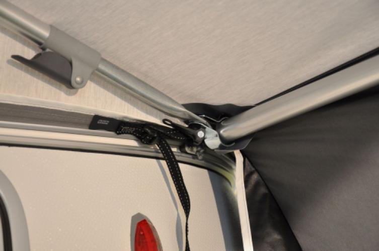 Voor een comfortabele hoogte wordt er bij de Eriba Touring Bologna een extra aluminium boogstok meegeleverd die aan de achterzijde van de luifel geplaatst dient te worden. Door deze extra boogstok heeft de Unico Bologna Touring voortent een perfecte daklijn, waardoor de afwatering optimaal is. Hierdoor zijn waterzakken in het dak verleden tijd. De Bologna voortent wordt met gepolsterde (tocht)stroken strak tegen de Touring caravan afgespannen. Hierdoor krijgt de voortent een mooie pasvorm en een tochtvrije sluiting.