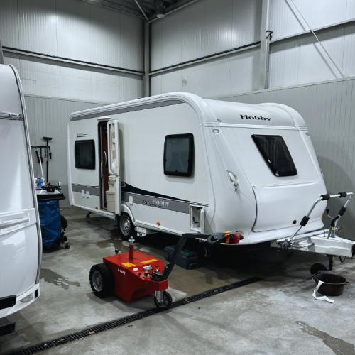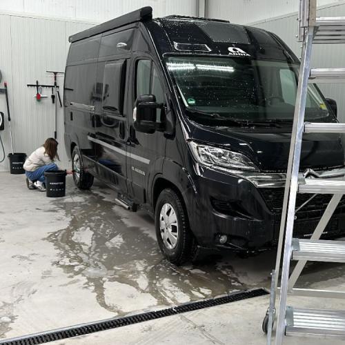 - Wassen en eventueel poetsen van de buitenkant van caravans en campers