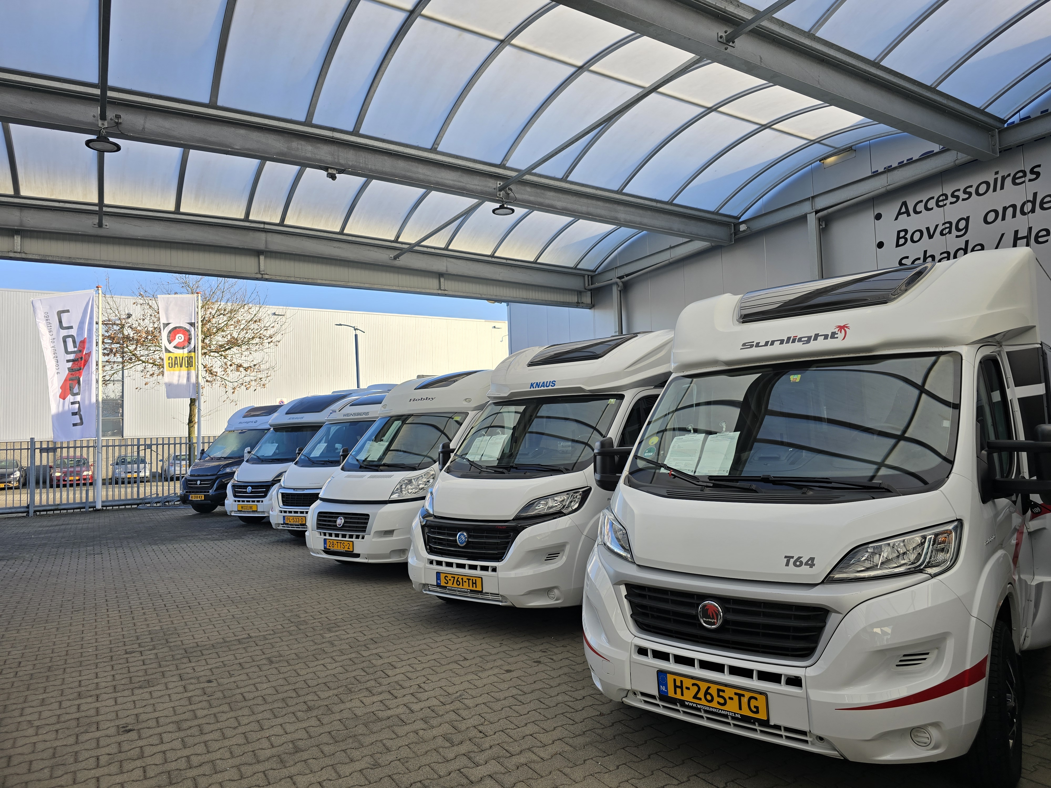 Prachtige opstelling van een deel van ons uitgebreide en altijd wisselende camperaanbod